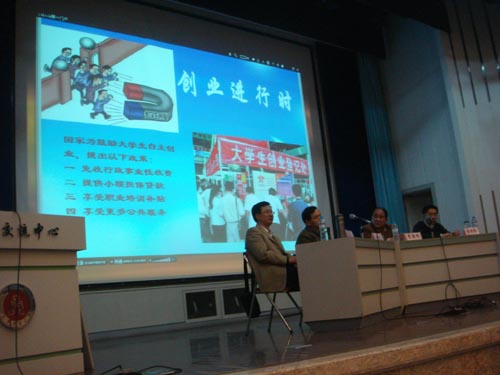 论坛正式开始前,经济学院副院长巫建国教授为论坛进行了标志启用仪式。启动仪式后,四位嘉宾首先围绕着虚拟经济与实体经济受到的冲击、国家振兴经济的措施、大学生就业等话题进行了深入的讨论。作为天津市工商联合会副主席、高级经济师,杨蔚东先生的发言受到同学们的关注,杨蔚东结合当前天津市经济发展的实际情况以及自己的从业经历,向现场的同学介绍了当前金额危机对天津市中小企业的影响,并带来了第一手的资料和数据,杨蔚东先生精彩的发言赢得场下阵阵掌声。在同学们最为关注的大学生就业话题上,嘉宾结合自己的研究和实践状况,给出了具体的指导意见。我校商学院李垣明教授从效益与公平的角度分析当前严峻的就业形势成因及出路,他结合自己成功经营企业的经历,对大学生在校期间如何做好知识储备,加强能力训练给出了指导性的意见,同学们很受启发。经济学院吕明元教授从自己经营广告公司开始谈起,他认为大学生就业所必须具备的五种能力,即环境适应能力,人际交往能力,自我表达能力,专业能力及英语能力。此外,吕明元教授还建议大学生就业应该“向前看”,“向下看”和“向内看”,对未来经济充满信心。经济学院易铁林教授结合近期在帮助企业招聘高校毕业生的感受,向现场的同学们说明了企业喜欢的毕业生所应具备的能力和素质,他认为大学生就业首先是一个心态问题,面对严峻的经济形势,就业对每个大学生都是挑战,因此积极正确的心态、扎实的专业能力、高水平的情商和端正务实的就业观的显得十分重要。
